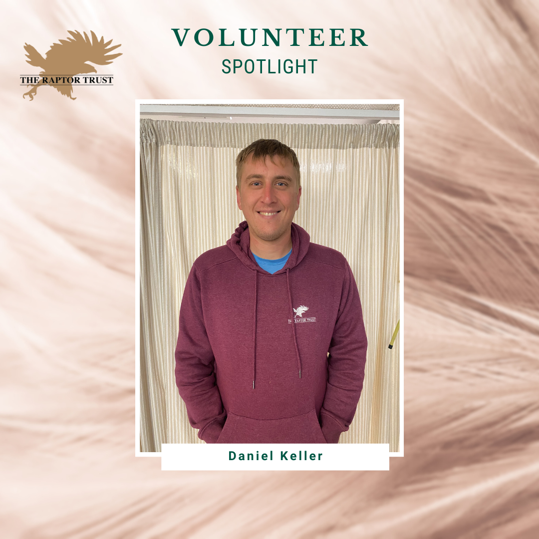 This month's volunteer spotlight shines on Daniel Keller. He found our organization when he was looking for volunteering opportunities which could improve lives and enrich others. He found The Raptor Trust to be a perfect fit. One of our most dedicated volunteers, Dan has been volunteering here weekly since 2018! Throughout our busy baby-bird summer season, he is all hands on deck caring, for our orphaned babies and is always a helping hand to staff. Daniel loves volunteering here at The Raptor Trust because it gives him the ability to work independently and freely, while still being able to collaborate with like-minded individuals. No matter what he walks into each week, Dan is ready to jump right in and get dirty, no questions asked. Whether it's helping the maintenance crew, or monitoring popsicle numbers in the freezer, he always greets each experience with a smile. Like many, Daniel is partial to Bald Eagles. Two of our permanent residents here are non-releasable Bald Eagles, Colonel and Uno, who he pays a visit to weekly. Overall, Mr. Daniel Keller is just grateful for this opportunity to work with the birds and give back to his community in a real way. We thank you for all of you do, Dan. The Raptor Trust would not be the same without you!