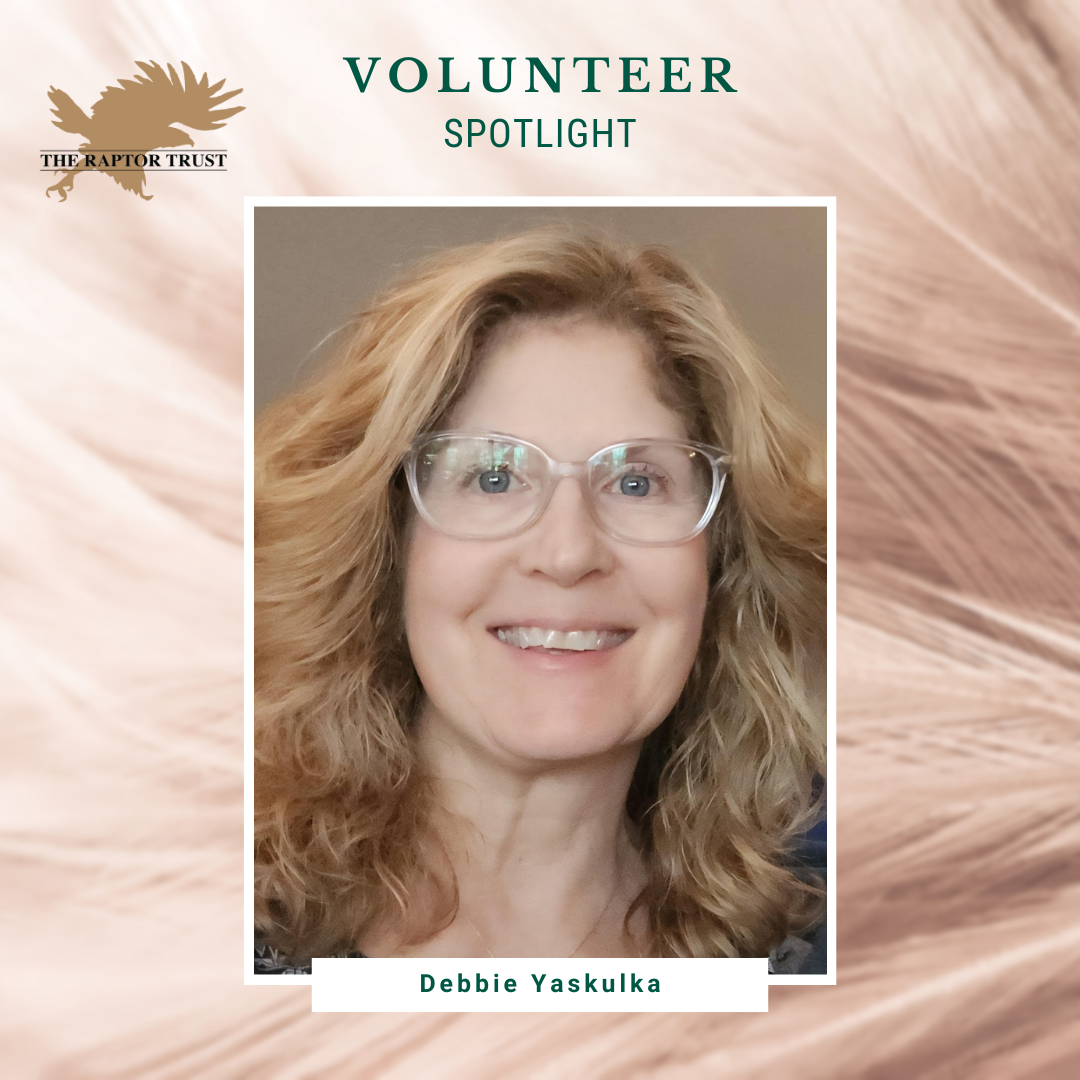 This month's Volunteer Spotlight is shining on Debbie Yaskulka! We were lucky enough to have her join our team just a few short years ago in 2023, but it truly feels like she has been here forever. Debbie first found out about The Raptor Trust through her son Ben, who works in environmental conservation. After visiting and inquiring about volunteering opportunities, the rest is history! Her favorite part of being here is the importance of the work she is doing, being able to directly give back to our environment each week. Debbie loves having the opportunity to learn about these fascinating birds from the staff and getting to work with such wonderful people. And of course she loves all of the avian friends she has made along the way! No matter what task we throw at Debbie, whether it is training newcomers, sorting newspapers, or cleaning up after all of our patients, she always does it with a smile. Being partial to her backyard visitors, Debbie's favorites are hummingbirds and bluebirds. But for Debbie, nothing will ever beat the magic of watching a Bald Eagle fly. She was lucky enough to see one get released here at TRT earlier this year; it was quite thrilling! Her last name, “Yaskulka,” means “swallow” in Polish, so being a birder is in her blood. Debbie wants everyone to know that “sometimes it feels we’re not doing enough in the world for future generations, so it is empowering for me to help make a difference locally. At TRT, I know I’m contributing to something with widespread impact.” Thank you for all you do, Debbie, TRT loves you!